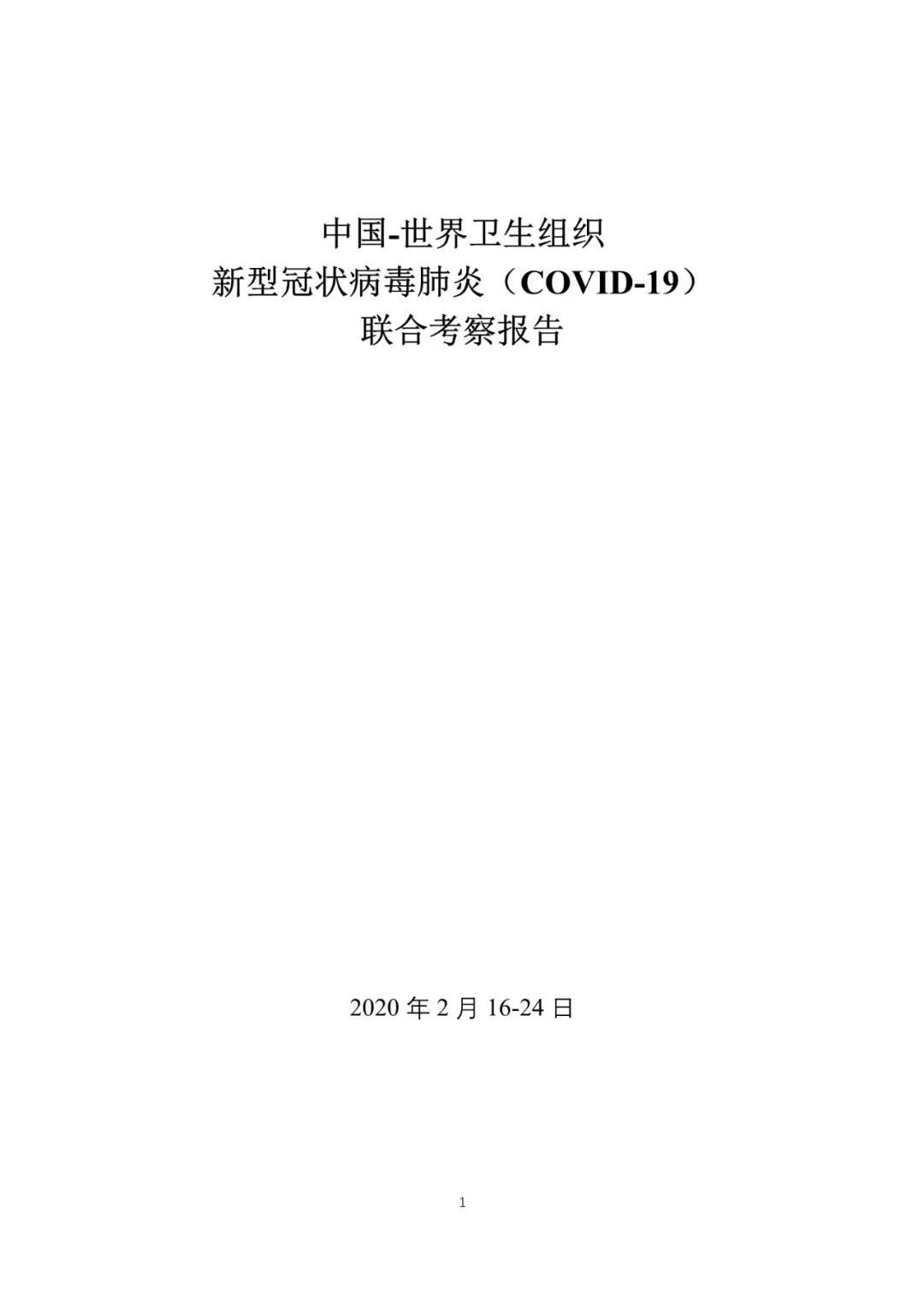 《中国-世界卫生组织新型冠状病毒肺炎(COVID-19)联合考察报告》发布(全文)