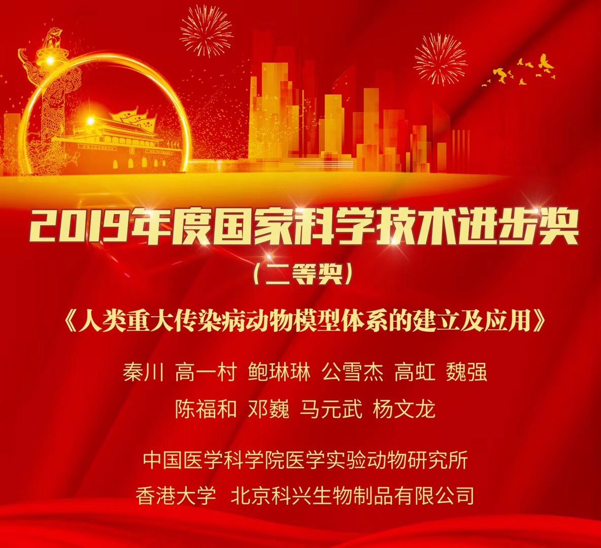 2020年1月10日,在人民大会堂隆重举行了2019年度国家科学技术奖励大会。由中国实验动物学会理事长、中国医学科学院医学实验动物研究所秦川教授团队领衔完成的“人类重大传染病动物模型体系的建立及应用”成果获得国家科学技术进步奖二等奖。