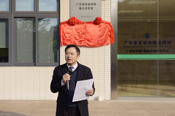 广东省实验动物监测所黄韧所长主持揭牌仪式