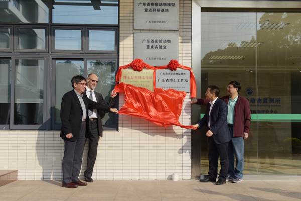 2019年1月20日上午,广东省实验动物监测所举行“国家博士后科研工作站”和“广东省博士工作站”揭牌仪式,省科技厅党组副书记龚国平副厅长、实验室与平台基地处黄江康处长、英国皇家医学院杰出外籍院士香港大学管轶教授、加拿大皇家科学院院士约克大学PeterHenry Backx教授为博士和博士后为工作站揭牌,中国科学院生物物理研究所田勇研究员、中国科学院广州生物医药与健康研究院赖良学研究员、苏州大学黄玉辉教授以及中山大学附属第一医院裴中研究员等专家出席了揭牌仪式,仪式由动监所黄韧所长主持。