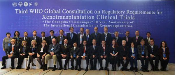 2018 年12 月12 日至14 日,由世界卫生组织主办,国际异种移植协会、中南大学承办的“第三届全球异种移植临床研究规范研讨会”在中南大学湘雅三医院举行。来自中国、美国、澳大利亚、西班牙、德国、意大利、比利时、瑞士、英国、韩国、荷兰等11 个国家的30 余名移植研究领域知名专家和食品药品监管部门人员参加论坛。世界卫生组织代表Jose Ramon Nunez,国际异种移植协会主席Leo Buhler,国际异种移植协会委员Wayne Hawthorne,国家药品监督管理局食品药品稽查专员王兰明,湖南省人大常委会党组成员、省十二届人大常委会副主任李友志,湖南省卫生健康委员会副主任易露茜,中南大学党委常委、 副校长陈翔等出席开幕式。参加此次论坛的专家还包括国际移植协会前任主委Philip O'Connell,国际异种移植协会前任主席MeganSykes、Philip O'Connell、Peter Cowan, 美国食品药品监督管理局代表Judith Arcidiacono,美国异种移植协会主席Agnes Azimzadeh,德国异种移植学会主席Bruno adolf Reichart, 韩国移植学会前任主席 CurieAhn,澳大利亚墨尔本圣文森特医院免疫学研究中心易受南,中南大学湘雅三医院王维教授等知名专家。世界卫生组织代表Jose Ramon Nunez 说:“随着同种移植在临床上的广泛开展,移植供体短缺的问题越来越突出,成为了制约全球移植发展的主要瓶颈。我们已经进入了一个全新的领域——异种移植领域,未来我们必须继续推动其发展。异种移植是一个可以彻底改变移植界的重要机会,这个机会对病人来说至关重要,世界卫生组织将全力支持异种移植的研究”。“异种移植技术一直在进步,现在主要的难点在于排斥性的反应,因为人的免疫系统会识别动物的抗原而产生抗体,发生免疫反应”。国际异种移植协会主席Leo Buhler 说。与会专家围绕异种移植临床研究的生物安全、研究规范、医学伦理和研究成果等相关问题进行研讨。专家认为,如何推动和规范异种移植从基础研究到临床研究,再到临床应用,这是世界卫生组织和世界各国相关研究者十分重视的问题。鉴于此,联合国世界卫生先后三次组织召开“全球异种移植临床研究规范研讨会”,不断完善异种移植临床研究国际标准,支持联合国各成员国安全有效地开展器官、组织、细胞等各种异种移植临床研究。中南大学湘雅三医院为中国乃至全球异种移植医学的发展做出了积极贡献:一是牵头制定了“全球异种移植临床研究规范”,承办了第一届和第三届“全球异种移植临床研究规范国际研讨会”;二是严格按照世界卫生组织标准和规范,建立了“生物安全供体猪培育中心;三是在政府批准下,按照国际标准开展了“猪胰岛移植治1 型疗糖尿病的临床研究”,证明了异种移植的生物安全性、移植有效性和技术可行性。会议期间,世界卫生组织代表Jose Ramon Nunez,国际异种移植协会主席Leo Buhler,国际异种移植协会委员Wayne Hawthorne,中南大学湘雅三医院王维教授,向媒体记者介绍了推动异种移植医学研究发展的伦理和规范原则的执行情况。新华社、中央电视台、科技日报、湖南日报、湖南卫视等20 余家媒体进行了集中采访报道。医院党委书记何庆南主持媒体集中采访会。 - THE END -