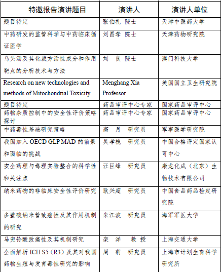 30 分钟/人,特邀报告人为国内外药物毒理学相关领域的著名学者。