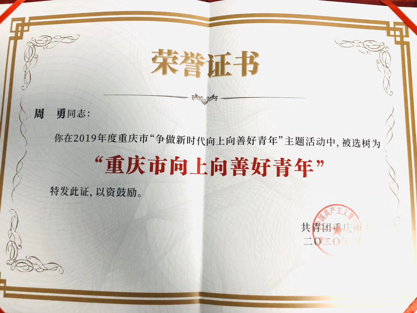 2020年重庆市“争做新时代向上向善好青年”主题活动中,威斯腾生物董事长周勇荣获“新时代向上向善好青年——创新创业好青年”称号。
