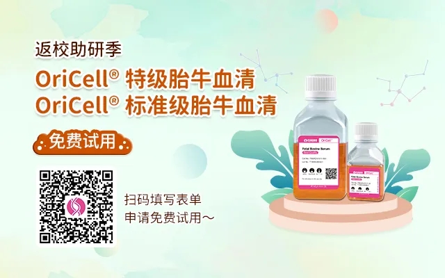 赛业精选OriCell特级胎牛血清、OriCell标准级胎牛血清20mL包装试用服务。零成本,零风险,帮您的细胞找到最适合的血清,扫码填写表单申请试用。