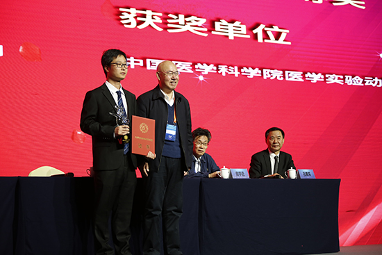 夏咸柱院士为一等奖获奖者颁奖2、中国实验动物学会(CALAS)与国际实验动物科学理事会(ICLAS)共同设立“ICLAS-CALAS”国际青年奖,以表彰他们在实验动物科学领域中取得的成绩。首次“ICLAS-CALAS国际青年奖”授予了闫森等10位国内外青年学者。3、经年会组委会组织专家评审,共有“人源肿瘤异种移植模型(PDX)的建立及初步药效分析”等15篇论文获得“第十四届中国实验动物科学年会优秀论文奖”。夏咸柱院士、国际实验动物科学理事会主席Patri Vergara教授,中国实验动物学会理事长秦川教授、副理事长陈学进教授、赵德明教授、山东省实验动物学会理事长吕素军研究员等为上述获奖人员颁发了奖杯和证书。