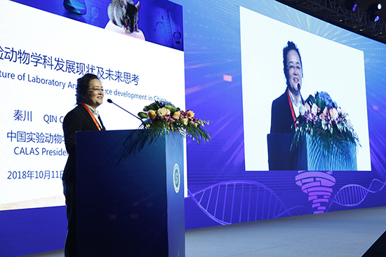ICLAS主席Patri Vergara颁奖开幕式后,中国实验动物学会理事长秦川教授做了“中国实验动物发展现状及未来思考”的主旨报告。国际实验动物科学理事会主席Patri Vergara做了“ICLAS programs for the development of Laboratory Animal Science”、山东省医学科学院副院长张福仁研究员做了“几种皮肤病生物标志物的发现和应用”、RSPCA的Paul Honess教授做了“What do we want our research animals to be?”、山东省肿瘤医院院长李宝生研究员做了“肿瘤放疗技术进展及作用”、巴西实验动物学会主席Ekaterina Rivera博士做了“Laboratory Animal Science in South America”、2018年中国实验动物学会科学技术奖一等奖获奖者,中国医学科学院医学实验动物研究所马元武副研究员做了“基于CRISPR-Cas9的大鼠精确基因编辑技术体系的建立及应用”等大会报告。