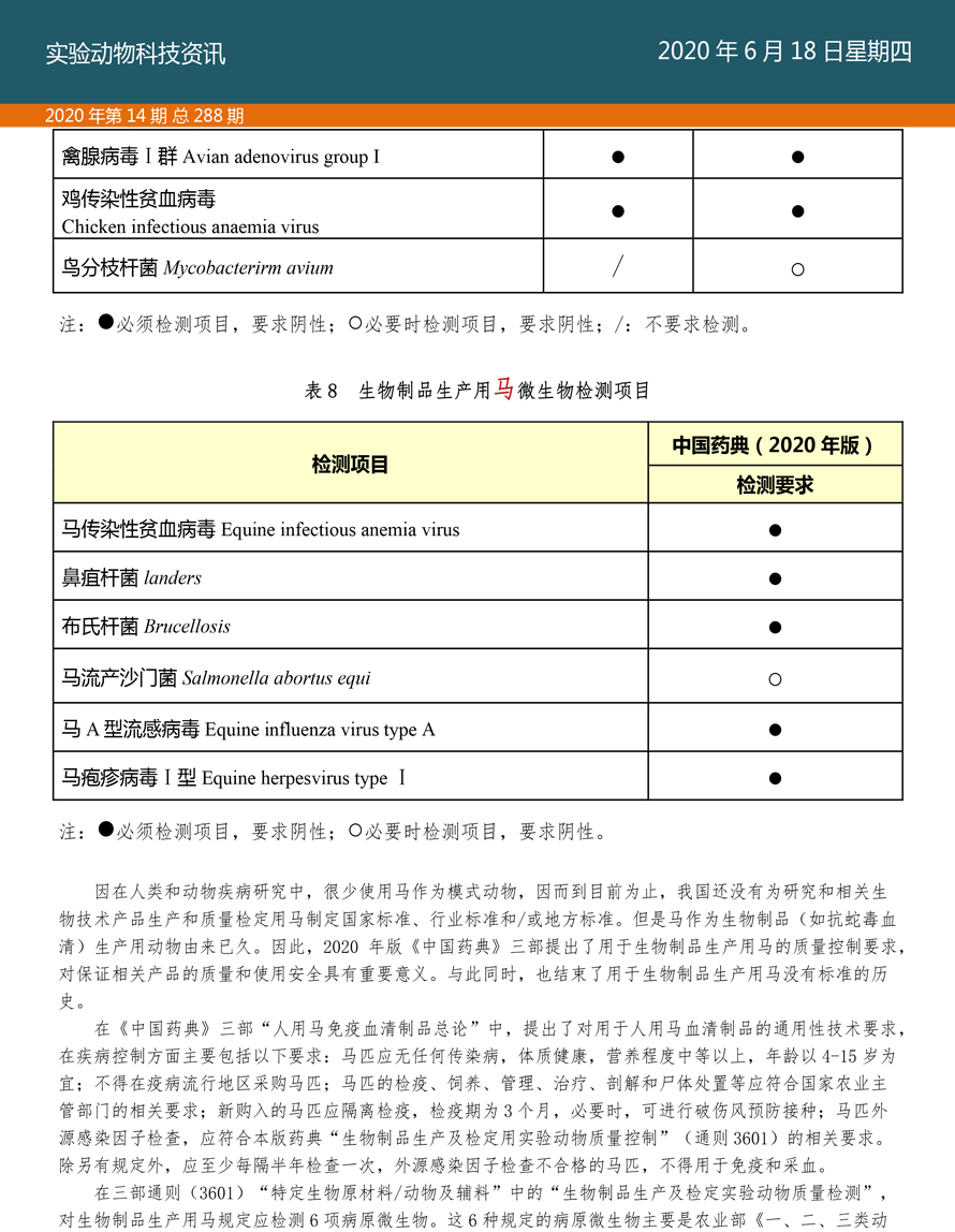 2020年版《中国药典》对生物制品生产及检定用实验动物质量控制的要求