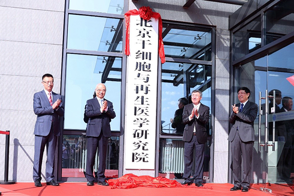 中科院副院长相里斌、北京市副市长隋振江、中科院副秘书长周琪、北京市科委主任许强为干细胞研究院揭牌