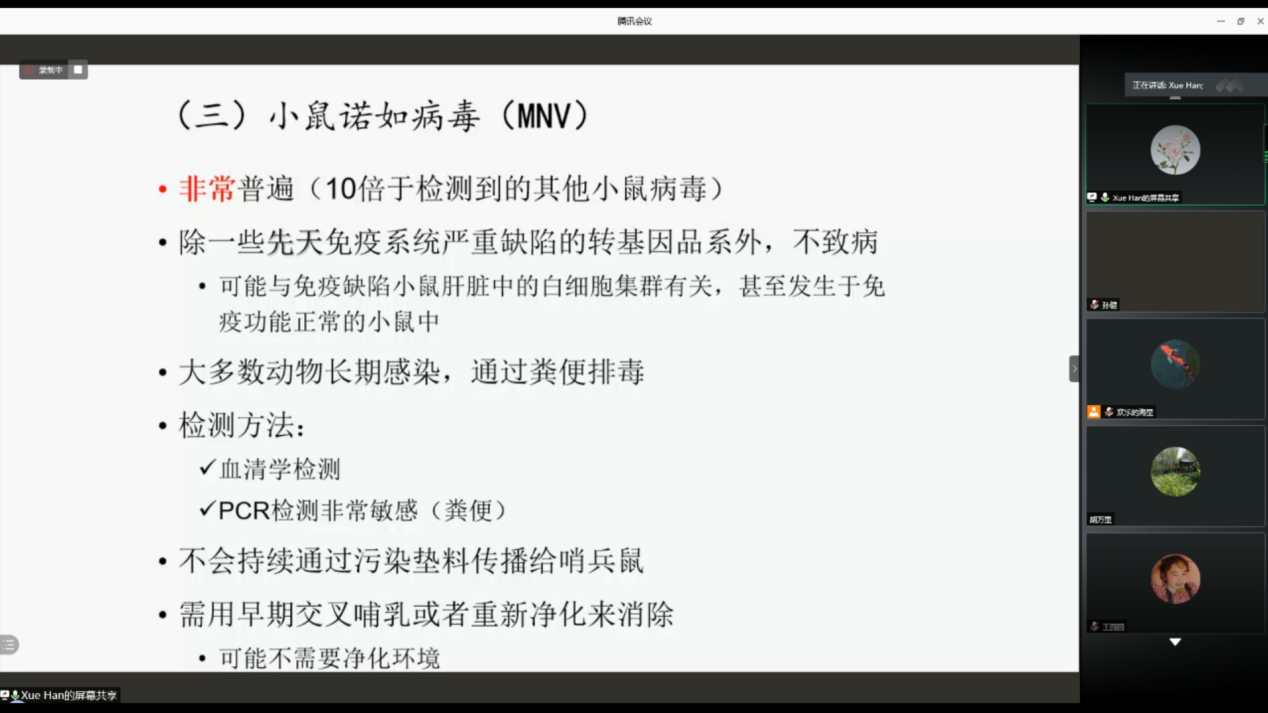 培训还邀请到维通利华韩雪博士,讲授常见啮齿类动物病原对动物健康福利和科研的影响及控制措施。主要讲授了大小鼠常见传染病及其对科研的影响;实验动物病原预防和控制措施。课程中,各位授课专家还针对学员提出的问题进行了解答与探讨。