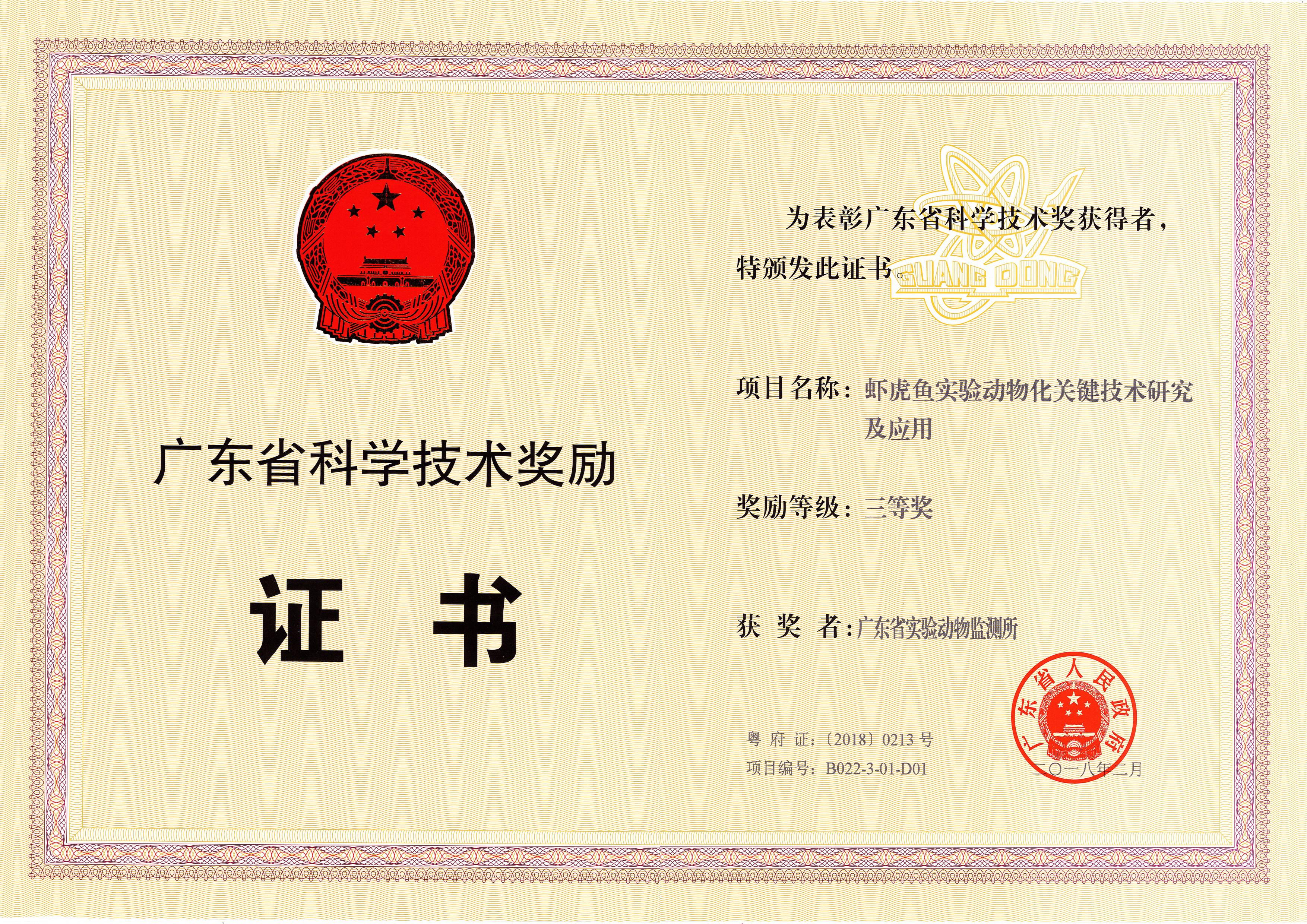 2018年3月26日,广东省科技创新大会在广州隆重召开。会议表彰了获得2017年度广东省科学技术奖的先进单位和个人,广东省实验动物监测所完成的“虾虎鱼实验动物化关键技术研究及应用”荣获广东省科学技术奖三等奖。