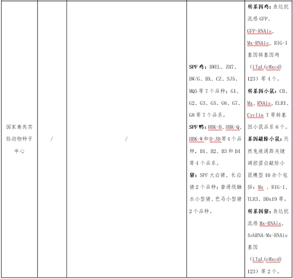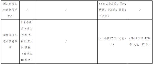 2017年国家实验动物种子中心(资源库)资源建设基础数据