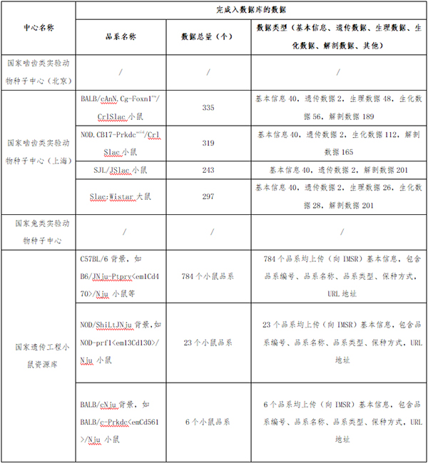 2017年国家实验动物种子中心(资源库)资源数据化表达工作