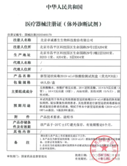 中国医学科学院病原生物学研究所科研团队最早发现新冠病毒,在此基础上第一时间建立病毒核酸PCR检测方法,并启动研发诊断试剂,首批通过湖北前线国家卫生健康委组织的现场考核。与相关企业共同研发的新型冠状病毒2019-nCoV核酸检测试剂盒(荧光PCR法)获得国家医疗器械批件(国械注准20203400179),该试剂盒于2020年5月被列入世界卫生组织应急使用清单,并通过院校向海外约15个国家捐赠。