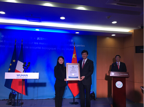 近日,在法国总理贝尔纳?卡泽纳夫的见证下,中国合格评定国家认可委员会(CNAS)秘书长肖建华在武汉市向中国科学院武汉病毒研究所颁发了我国生物安全四级实验室(P4级实验室)第一张国家认可证书。这标志着我国已经建成了国际上最高等级生物安全防护水平的实验设施,具备了开展烈性病原体研究与检测的硬件条件,在烈性传染病研究、防控、生物恐怖防范等领域实现了新的重大突破。