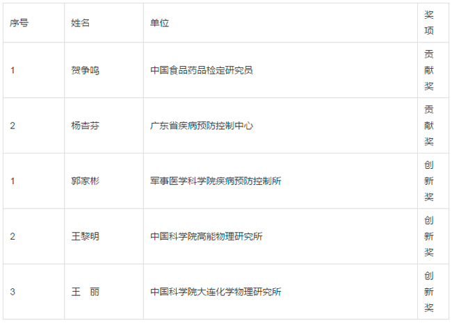 “中国毒理学会联合利华毒理学替代法奖”获奖者名单