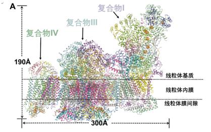 植物分枝激素独脚金内酯的感知机制示意图植物激素调控植物的繁衍生息,与人类生存环境和粮食安全息息相关。独脚金内酯作为新型植物激素,调控植物分枝、决定植物株型、影响作物产量。清华大学谢道昕、饶子和及娄智勇等合作发现了独脚金内酯的受体感知机制,揭示了“受体-配体”不可逆识别的新规律,发现受体D14参与激素活性分子的合成和不可逆结合、进而触发信号传导链,调控植物分枝。这一发现丰富了生物学领域过去百年建立的配体可逆地结合受体并循环地触发传导链的“配体-受体”识别理论,为创立生物受体与配体不可逆识别的新理论奠定了重要基础,并对植物株型遗传改良和寄生杂草防治具有重要指导作用。该工作发表于《自然》杂志(Nature,2016 ,536:469-474)。线粒体呼吸链超级复合物的结构与功能