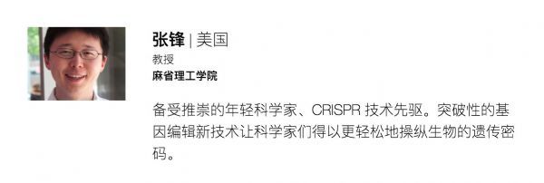张锋出生于河北石家庄。在哈佛大学毕业后,他在斯坦福大学 Karl Deisseroth 教授(光遗传学奠基人之一)的课题组获得博士学位。随后,他回到了哈佛大学,同样在 George Church 教授的指导下完成了博士后训练。张锋在 34 岁时成为了 MIT 史上最年轻的终身教授,打破了钱学森(35 岁)的记录。作为麻省理工学院与哈佛大学博德研究所核心成员,全球最著名的年轻科学家之一,他所开创的 CRISPR 系统是基因编辑技术的重大突破,为人类生命科学研究打开了又一扇大门。世界经济论坛“全球青年领袖”社区目前拥有 800 多位成员,他们当中有政治决策者、商业领袖、诺贝尔奖得主、艺术家、联合国亲善大使、社会企业家等。他们都在各自领域秉持创新精神,为社会可持续包容发展贡献力量。新当选者将加入这一集体,在未来 5 年任期中,他们将通过世界经济论坛平台交流合作,为解决全球面临的各种挑战做出努力。社区成员正在推动的项目有:支持循环经济的全球推广,保护水资源安全倡议,帮助瘫痪者重新站立的新疗法,设立全球医疗抢救互助网络等。往届“全球青年领袖”入选者包括:阿里巴巴集团董事局主席马云,中国证监会副主席方星海,华人文化产业投资基金董事长黎瑞刚,联合国开发计划署亲善大使周迅,雅虎公司首席执行官 Marissa Mayer,Alphabet 公司(Google 母公司)首席执行官 Larry Page, 日本女性宇航员山崎直子等。