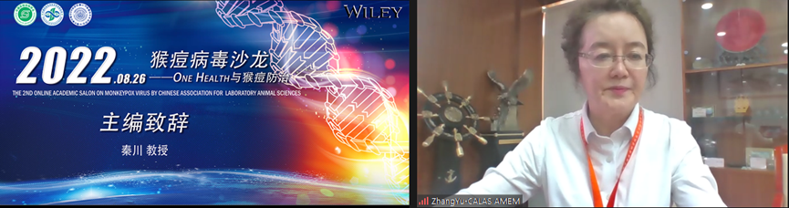 秦川教授致开幕辞,简述了自5月初以来,猴痘在多个非流行国家暴发,已传播到90多个国家,感染人数超过3.5万。尽管猴痘病毒在传统流行的地区已经传播了几十年,但对猴痘的研究仍有很多未知。大部分人兽共患病病原体能跨越人类、野生动物及家畜之间的物种屏障,一旦广泛传播,将严重危害人类健康和社会经济发展,人类在应对这类传染病时,仍然存在很多不足。“同一健康”的理念强调多学科、多部门、多地域共同协作,达到人类、动物、环境三者的最佳健康状态。猴痘是一个全球公共卫生问题,希望通过本次沙龙,能够促进猴痘等传染病领域研究的国际交流和合作,同时促进“同一健康”策略在猴痘疫情防控中的倡导和实施。