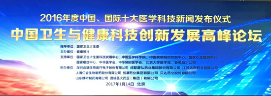 1月14日,在由国家卫生计生委指导,健康报社与相关医学科研机构联手举办的2017中国卫生与健康科技创新发展高峰论坛上,健康报社发布了“2016年度中国、国际医学科技十大新闻”。