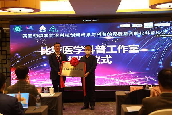 为贯彻落实“中共中央办公厅、国务院办公厅《关于新时代进一步加强科学技术普及工作的意见》”精神,配合2022年“全国科普日”活动,总结提炼实验动物领域前沿科技成果与科普创作之间的新问题、新方向、新观点、新思想,从而更好的开展实验动物原创优质科普内容创作,促进前沿科技成果及时转化为优质科普资源,“实验动物学前沿科技创新成果与科普的深度融合转化科普沙龙暨全国科普教育基地、比较医学科普工作室授牌仪式”于2022年11月12日在北京人卫酒店举办。活动采取线下和线上相结合的方式,来自线下和线上共300余人参加了会议。