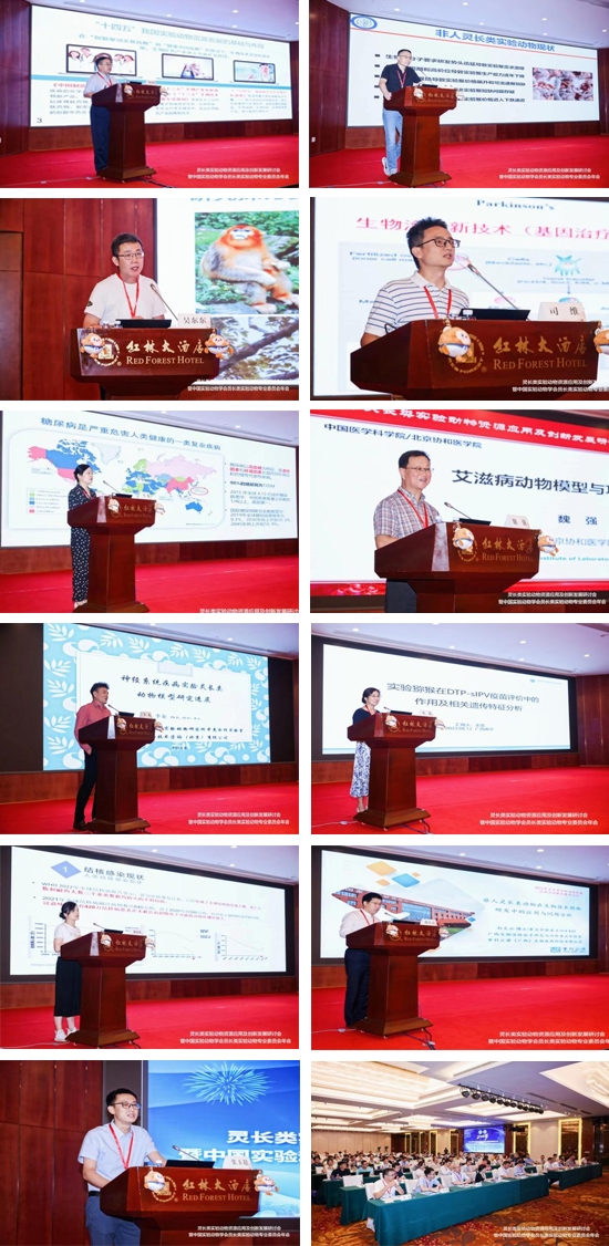开幕式结束后,中国食品药品检定研究院贺争鸣研究员、中国科学院脑科学与智能技术卓越创新中心孙强研究员、中国科学院昆明动物研究所吴东东研究员,昆明理工大学司维教授、四川大学李静教授、中国医学科学院医学实验动物研究所魏强研究员和李秦教授、中国医学科学院医学生物学研究所史荔研究、广西生物活性分子研究与评价重点实验室赵太云研究员、中国实验灵长类养殖开发协会张玉超秘书长分别以《“十四五”我国实验动物资源发展的基础与布局》、《非人灵长类实验动物行业的机遇与挑战》、《非人灵长类动物表型与遗传》、《干细胞治疗膝骨关节炎猴模型的临床前研究与转化》、《自发糖尿病猕猴揭示肠道微生物与棕榈酸导致糖尿病的机制研究》、《艾滋病灵长类动物模型与功能性治愈》、《神经系统疾病实验灵长类动物模型研究进展》、《实验猕猴在DTP-sIPV疫苗评价中的作用及相关遗传特征分析》、《实验猴结核的预防、控制和治疗》、《非人灵长类实验动物在生物技术药物研发中的应用与问题分析》和《实验猴进口工作中重点关注热点问题》为题作了精彩的现场报告和交流。