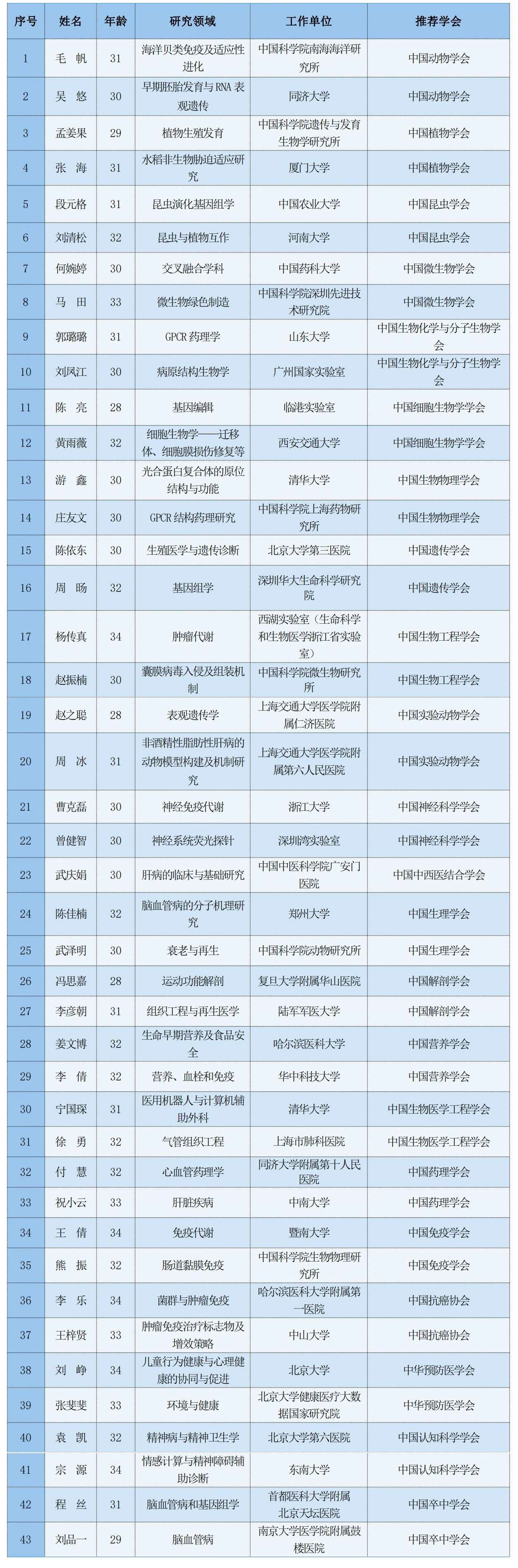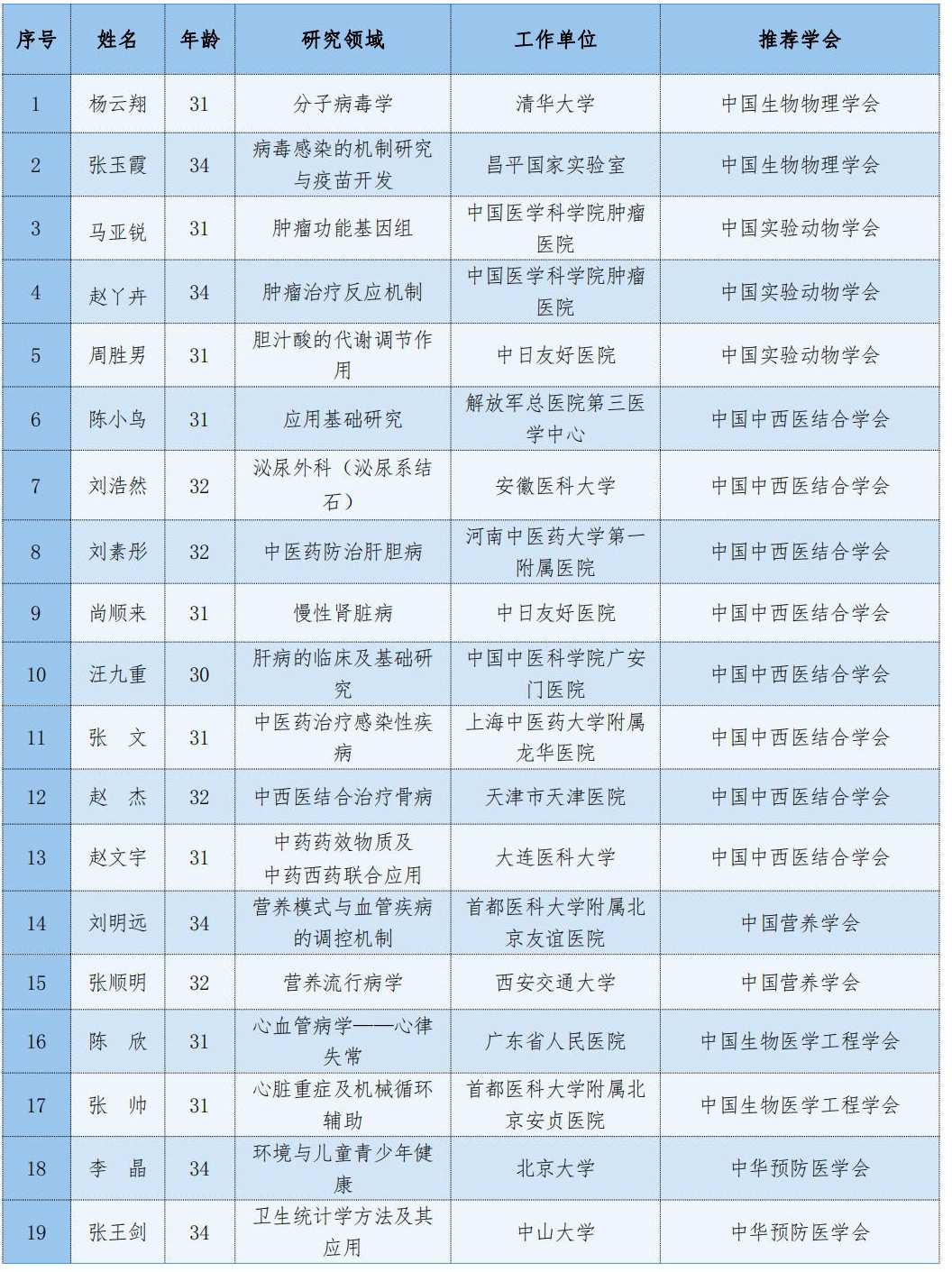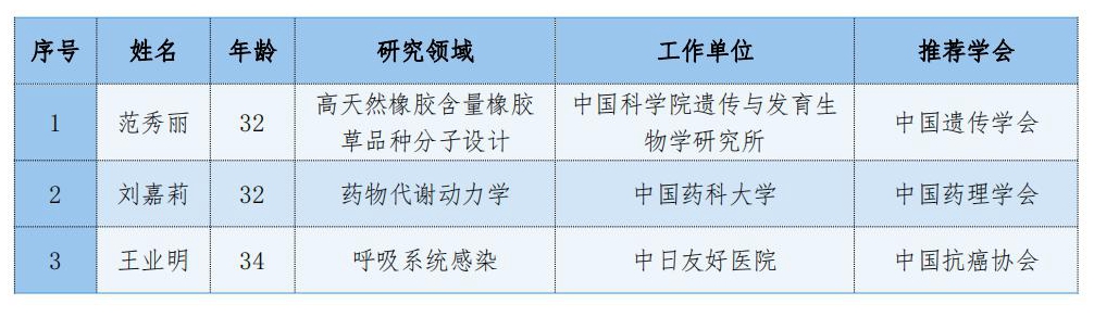 第九届“青年人才托举工程”项目中国科协资助入选人名单(按学会编码排序)