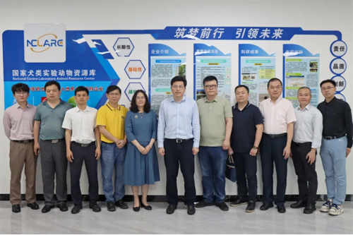 5月20日上午, 国家科技基础条件平台中心 (以下简称平台中心)刘晓晨主任一行来到广州医药研究总院国家犬类实验动物资源库(以下简称资源库)调研考察。同行的还有国家科技基础条件平台中心综合处、设施处及科技部基础司科技基础能力建设处等相关部门领导。广东省科技厅实验室与平台基地处处长黄江康、广东省科技基础条件平台中心主任罗亮等多位领导陪同调研。广州医药研究总院董事长、总经理、资源库主任倪庆纯,总工程师、资源库副主任陈迪新博士,资源库副主任胡敏华博士等参与了调研。