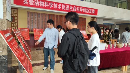 贵州中医药大学联合熠品(贵阳)质量科技有限公司开展“实验动物科技推动生命科学研究发展”为主题的科普活动分别在贵州中医药大学、熠品(贵阳)质量科技有限公司设置展台。展出了贵州中医药大学于1982年开始引进贵州从江香猪为原种成功培育的实验动物新资源贵州小型猪,实验动物笼具、垫料、饲料及在八十年代饲养小鼠的陶罐等。此次活动的志愿者为贵州中医药大学实验动物学专业学生,他们热情且专业地投入到服务中,展现出对实验动物科学的热爱与奉献精神。