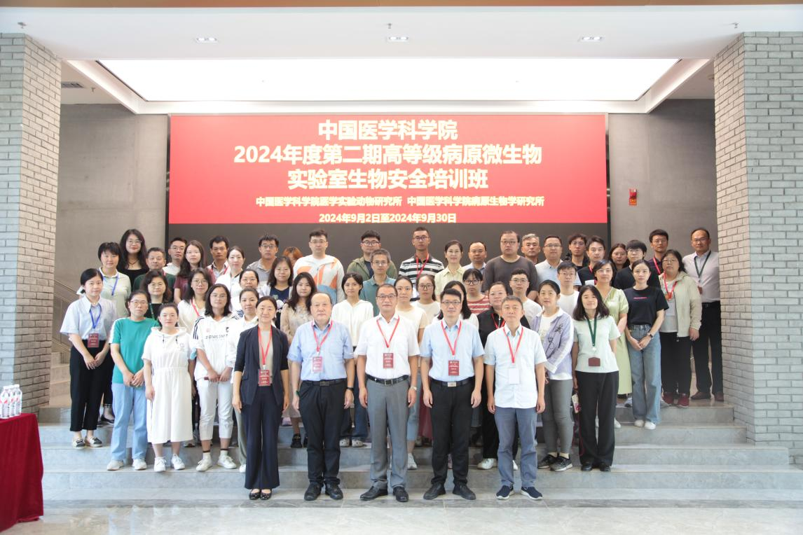 2024年9月2日,中国医学科学院2024年度第二期高等级病原微生物实验室生物安全培训班在北京开班。国家卫生健康委科教司伍竞成副处长、中国医学科学院北京协和医学院王卫主任、中国医学科学院医学实验动物研究所邓巍书记和中国医学科学院病原生物学研究所舒跃龙所长出席开班式并讲话。承办方中国医学科学院病原生物学研究所与中国医学科学院医学实验动物研究所分管领导及各职能部门负责人、授课教师以及来自北京、山西、吉林、黑龙江、浙江、河南、广东、海南、四川、贵州、西藏、陕西、甘肃、青海等地区的44名学员参加了开班式。中国医学科学院王卫主任主持开班仪式。