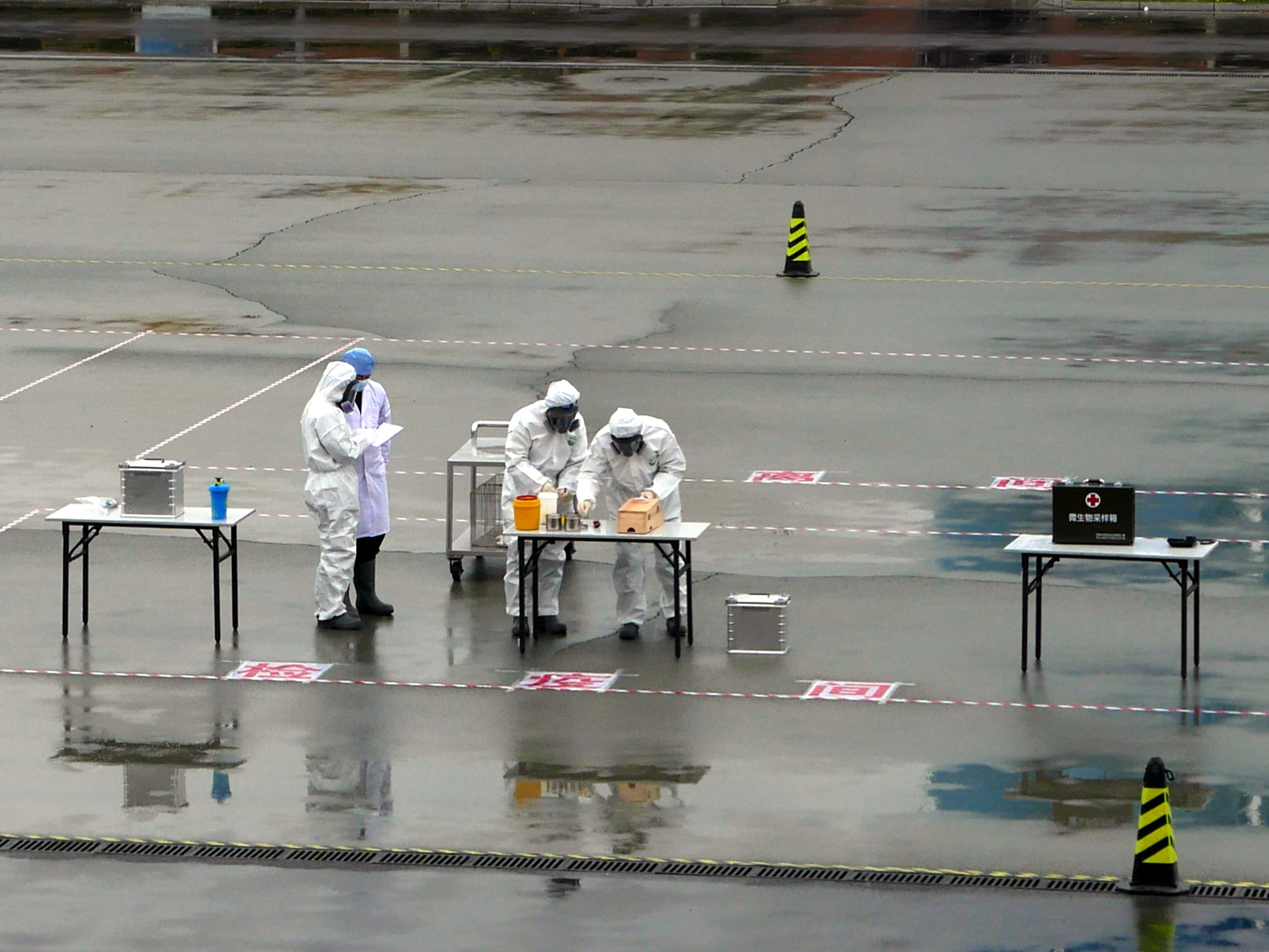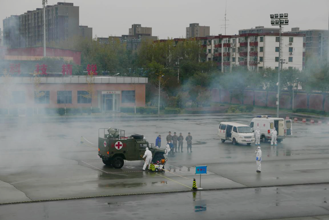 演习的第一部分模拟测试发现突发重大疫病的程序及预警,第二部分测试现场的采样及初筛;第三部分测试流调、洗消、后续监测及执行控制程序。