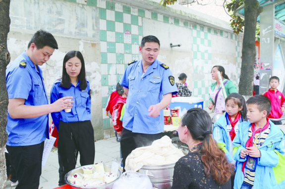 图为利川市食品药品监管局执法人员在开展食品安全宣传教育活动。