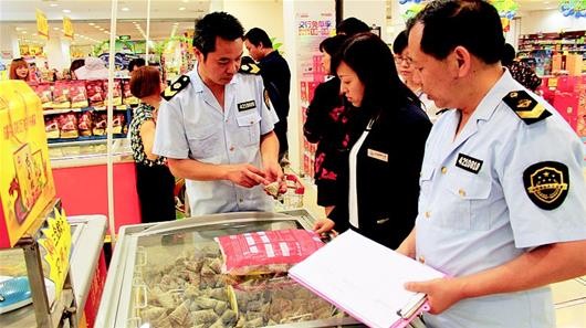 图为:端午节前,宜昌食药监管人员检查节令食品。