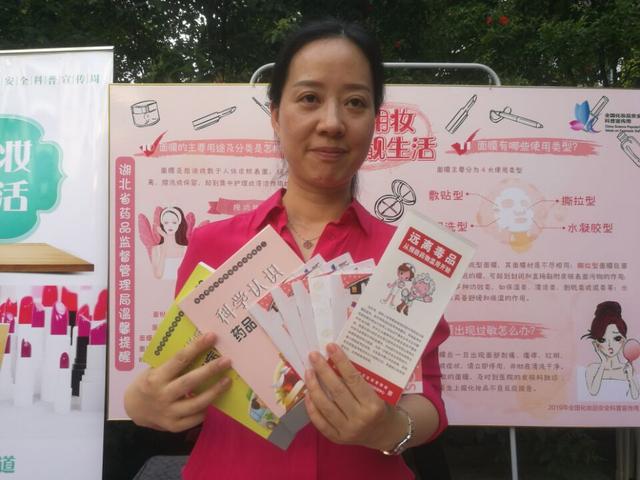 和这位拿着染发剂来找专业人士鉴定的女士一样,看到讲解化妆品安全知识的专家来到了家门口,不少社区居民也把常用的化妆品、防晒霜和面膜打包带到了现场,求讲解。宣传人员发放的化妆品安全知识宣传手册也是供不应求,宣传台前一会儿就被“打了围”。湖北省药品监督管理局不良反应监测中心高级工程师曹秀荣: