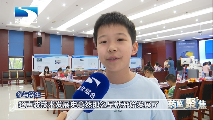 在医疗器械安全宣传周活动期间,来自武汉市四美社区和同安社区的60余名小学生也受邀走进湖北器械院,在专家的讲解下,了解到医用超声的发展历程,参观了医用口罩检验实验室。