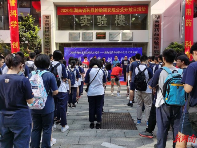 新湖南客户端8月27日讯(记者 李传新 通讯员 陈得雨 摄影 屈之程)我省2020年药品科技活动周今天在湖南省药品检验研究院启动,来自长沙市长郡中学的80余名高中生走进湖南省药品检验研究院实验楼,近距离接触“高、精、尖”仪器设备,亲身感受药品检验检测实验室的操作乐趣和知识科普。