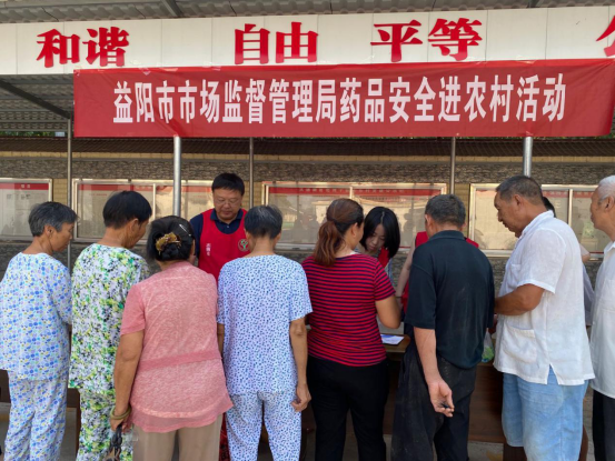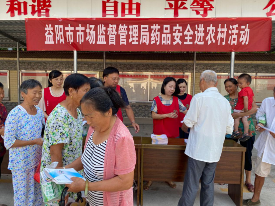 8月28日,益阳市市场监督管理局的志愿者们到大通湖区向东村开展药品安全进乡村活动,为村民们送去了《儿童用药安全须知》、《教您科学服用中药》等药品安全科普知识手册以及藿香正气水、清凉油等防暑降温药物。