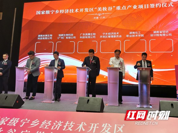 红网时刻广州11月13日讯(记者 易添麒 通讯员 谢喜阳)“中国美妆版图上,已经镶嵌了奉贤东方美谷、湖州美妆小镇、广州白云美湾,有望崛起一个新的宁乡经开区‘美妆谷’。”11月13日,宁乡经开区在中国化妆品之都——广州花都向美妆企业发出邀约,打造总投资30亿元,规划面积5200亩,集单独购地区、标准厂房区、人才公寓、研发大楼、展示中心等综合功能配套区于一体的“美妆谷”,培育美妆国货良品中西部产业地标。会上,宁乡经开区分别与铭颜生物科技(广州)有限公司、广东英腾生物科技有限公司、湖南化工职业技术学院等五家企业、院校签订合作协议。