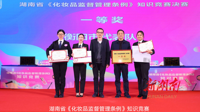 湖南日报·新湖南客户端12月9日讯(记者 李传新)今天上午,由省药品监督管理局主办、省化妆品经营行业协会协办的全省《化妆品监督管理条例》知识竞赛在长沙举行,本次比赛共有17支来自市州和协会推荐的队伍参加,最终决出6个队伍进入决赛,衡阳市代表队荣获一等奖。