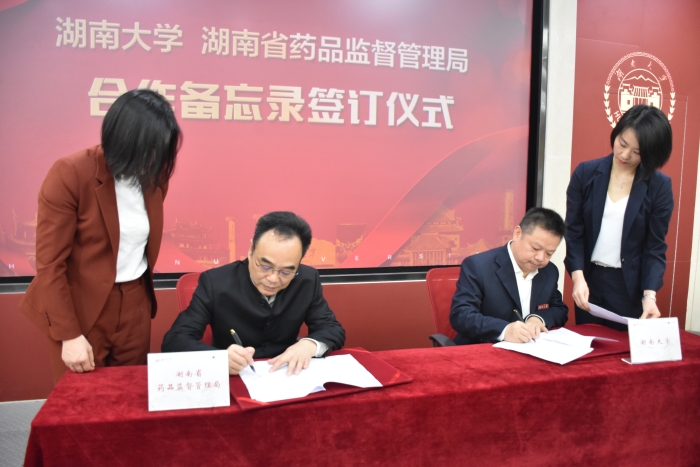 湖南大学化工学院党委书记王玉枝、湖南大学生物学院党委书记李勇军、湖南大学工商管理学院院长杨智、湖南大学工商管理学院党委书记夏树人等专家教授,湖南省药监局综合和规划财务处、药审中心主要负责人出席本次签订仪式。