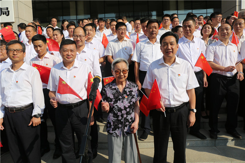 为庆祝新中国成立70周年,进一步坚定理想信念,引导和激励全局上下不忘初心、牢记使命,9月30日上午,省局举办了庆祝新中国成立70周年升国旗仪式、歌咏比赛和为离休老干部授勋等系列活动。省局党组书记、局长邓小川给两位九十多岁高龄的离退休老干部蒋玲、马郑媛颁发了庆祝中华人民共和国成立70周年纪念章。