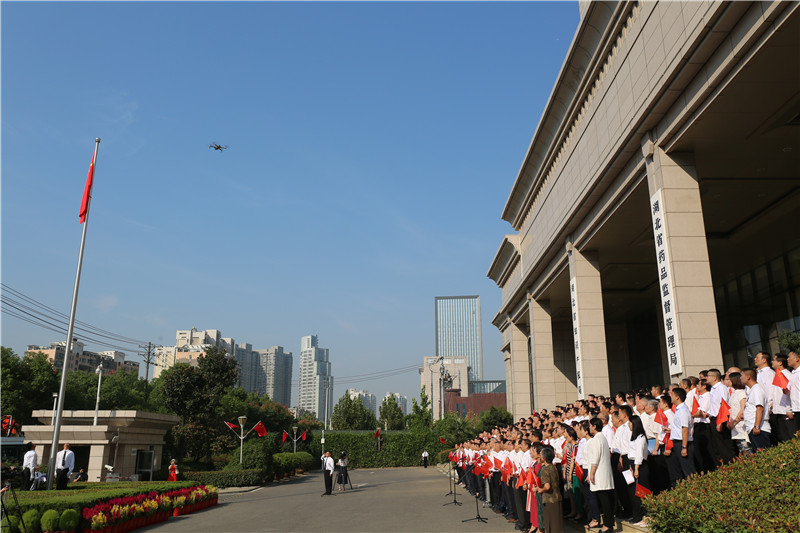 升旗仪式在庄严隆重的气氛中开始,伴随这五星红旗冉冉升起,全体人员高唱国歌,向国旗行注目礼。最后大家合唱了《歌唱祖国》,向伟大祖国致以崇高的敬意和美好的祝福。