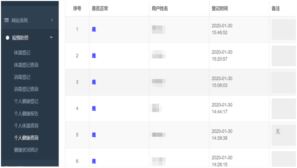 1月30日,湖北省器械监督检验研究院自主设计的疫情防控系统正式上线。该系统实现了全体员工、物业服务人员、食堂服务人员、访客的健康状况监测全覆盖。通过系统监测及早发现体温和健康异常,督促落实口罩佩戴、环境消毒,不留死角,切实保障当前及复工后的疫情防控工作,为打好疫情防控战提供有力的信息技术支持。