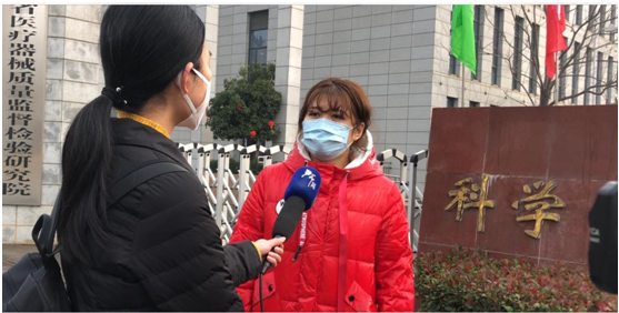 2月3日,省医疗器械质量监督检验研究院接受湖北电视台新闻采访。业务科负责人向新闻记者介绍了公众关心的医用防护口罩、医用防护服的产品质量标准和检验问题。采访记者现场参观了无源检验室正在进行的医用防护口罩、防护服抗合成血液穿透测试以及防护服断裂强力、断裂伸长率实验。省器械院针对疫情制定了应急检验方案,医用口罩选取了5个主要防护性能指标,医用防护服选取了8个主要防护性能指标开展检验,兼顾防护效果和检验时效,尽力为一线医护人员提供可靠、及时的技术支持。