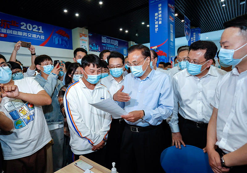 在宁波人才市场,李克强详细了解当地促就业情况,对保障灵活就业人员基本权益的探索表示肯定。李克强与求职人员交谈,勉励他们学好技能。他对求职的大学生说,政府会为促进更多就业搭好平台。你们不少人还想将来创业,希望你们有大志向,通过大众创业、万众创新创出大事业。