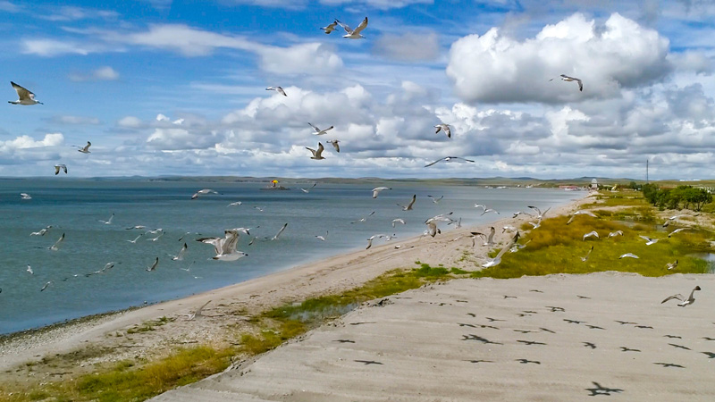 这是2019年8月28日拍摄的呼伦湖畔的水鸟(无人机照片)。新华社记者 沈伯韩 摄