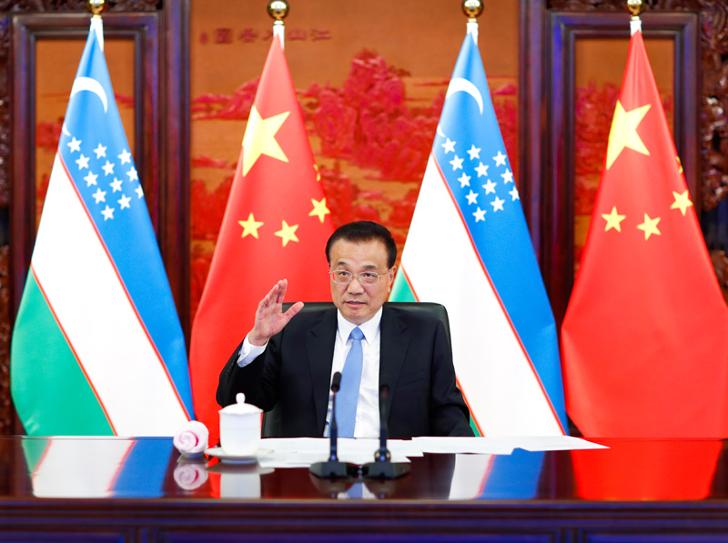 李克强表示,中乌是友好近邻和全面战略伙伴。前不久,习近平主席同米尔济约耶夫总统成功通话,规划两国关系发展。新冠肺炎疫情暴发以来,中乌相互支持、相互帮助,务实合作不断前行,为推动两国经济复苏发挥了积极作用。中方愿同乌方密切高层交往,增进政治互信,深化各领域务实合作,推动两国关系迈上新台阶。