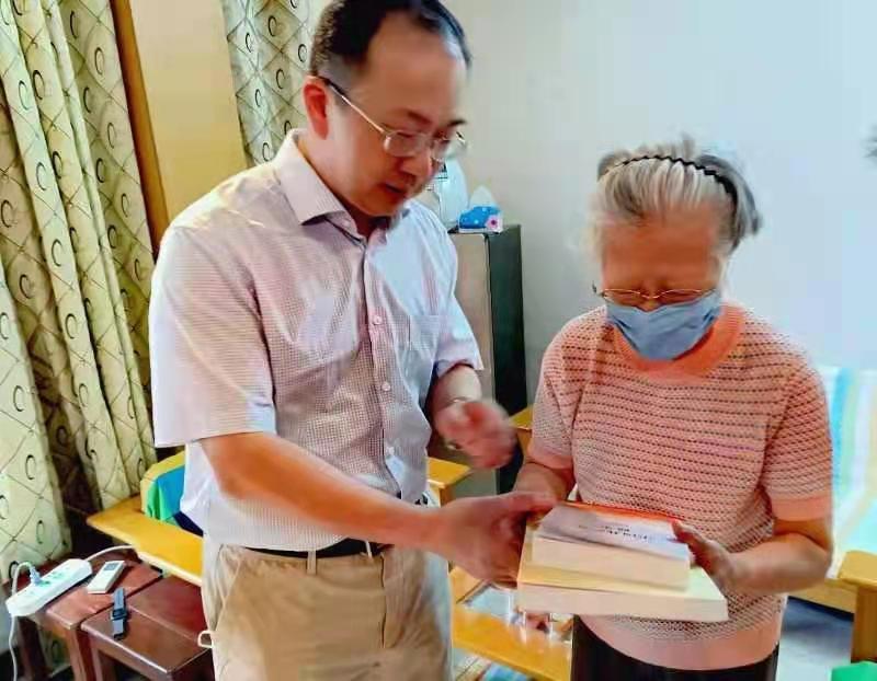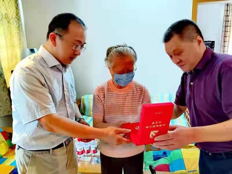来到有着72年党龄的离休老干部蒋玲家中,刘荣山得知疫情期间,她的女儿女婿双双感染了新冠病毒,但老人凭着顽强的意志和乐观的精神,在社区党组织的帮助下平安渡过难关的情况后,十分钦佩。老人却幽默的说:“其实我能坚持下来,有个‘秘方’,就是那时候局老干处的朱时见处长每天一个电话问情问暖,还管我这90多岁的老太婆叫阿姨,我别提有多高兴了!”攀谈中,刘荣山向蒋老通报了近期省局老干部们在党史学习教育中写诗、题字、讲党课、到红色教育基地重温入党誓词、诵伟人、唱红歌等一系列活动,并向老人赠送了习近平《论中国共产党历史》等书籍。听说老人多年来坚持收听收看《新闻联播》,并每天用一个小时做笔记、写感悟。刘荣山感慨道:老同志是党和人民的有功之臣,是党和国家的宝贵财富,他们开创了历史、见证了历史、书写了历史,并用自己一生不变的实际行动,生动诠释了不忘初心牢记使命的精神内涵。我们必须以对党负责、对历史负责、对先辈负责的态度传承好、发扬好红色基因,在党史学习教育中感党恩、受洗礼、坚信心、明方向,坚决把守护人民群众用药用械用妆安全的责任扛在肩上、放在心中、落到实处!