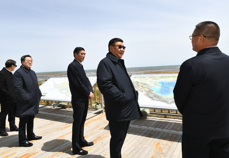 6月7日至9日,中共中央总书记、国家主席、中央军委主席习近平在青海考察。这是8日下午,习近平在海北藏族自治州刚察县青海湖仙女湾考察。新华社记者 申宏 摄