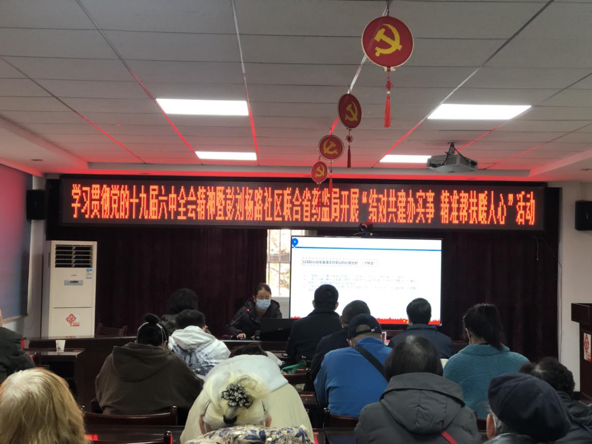 12月23日上午,省局检查中心(疫苗检查中心)党支部与彭刘杨路社区联合开展“结对共建办实事精准帮扶暖人心”主题党日活动,深入学习贯彻党的十九届六中全会精神,开展药品安全知识讲座、走访辖区零售药店。彭刘杨路社区党支部党员代表、辖区内零售药店代表及居民代表参加。