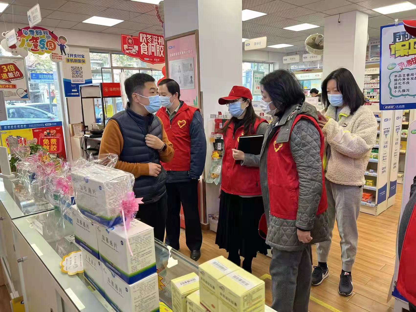 最后,服务团身着志愿者服装到社区零售药店进行帮扶,了解药店经营现状和面临的问题,指导药店规范经营。